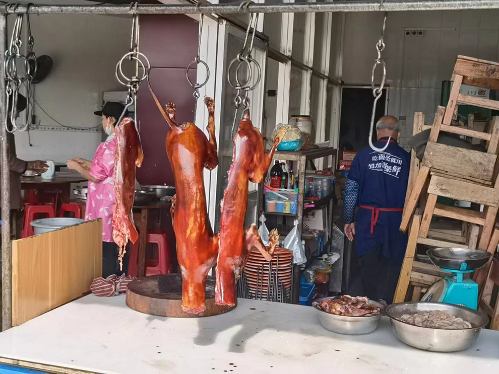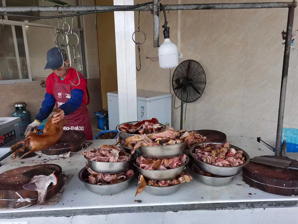 我对狗肉没有食欲,记录完就走了,因为一看到狗,就会想起它的两副面孔:温顺和凶残!