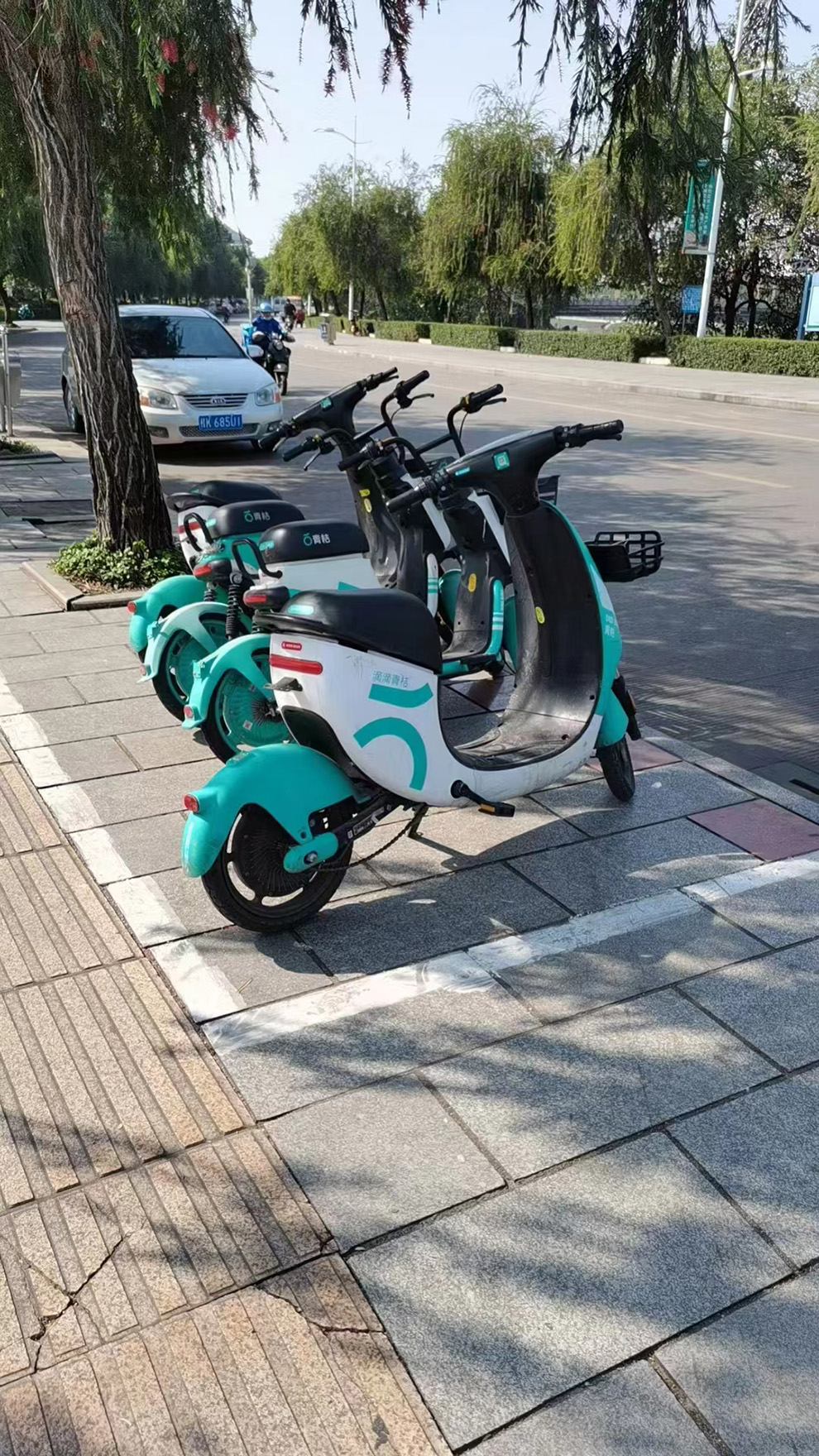 在玉林行走还是很方便的,路边共享电摩很多。